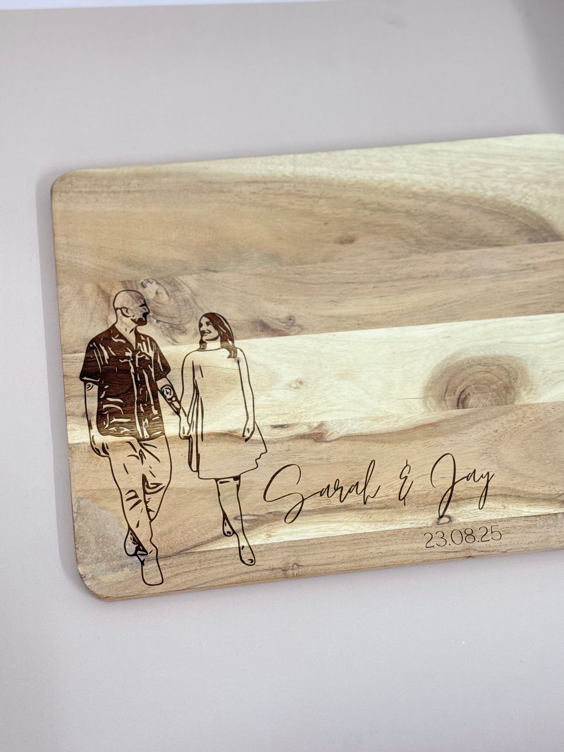 Our custom timber boards can be engraved and personalised to your own design. Available in small, medium and large boards.